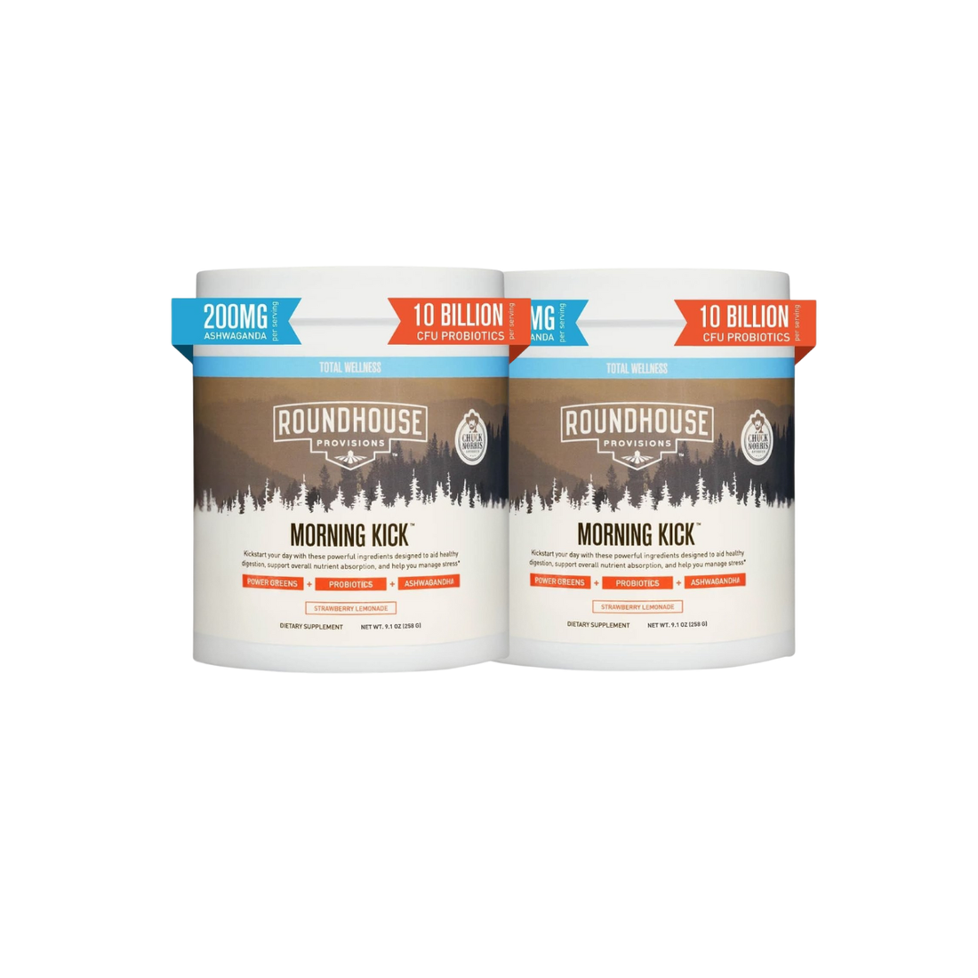 ROUNDHOUSE PROVISION Morning Kick Superfood Drink – Strawberry Lemonade Flavor – Zero Sugar Greens with Collagen, Probiotics & Ashwagandha – 30 Servings Each – Pack of 2